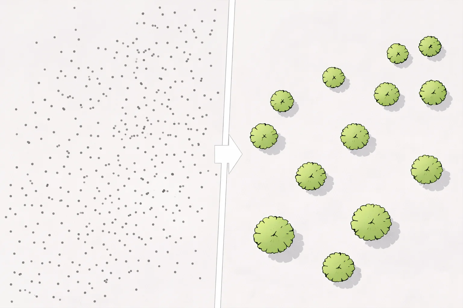 In vielen Fällen werden anschließend Baumsymbole manuell gesetzt. Jeder Punkt wird einzeln ausgewählt und mit einem Symbol versehen. Das ist zeitaufwendig und fehleranfällig – vor allem bei größeren Datenmengen.